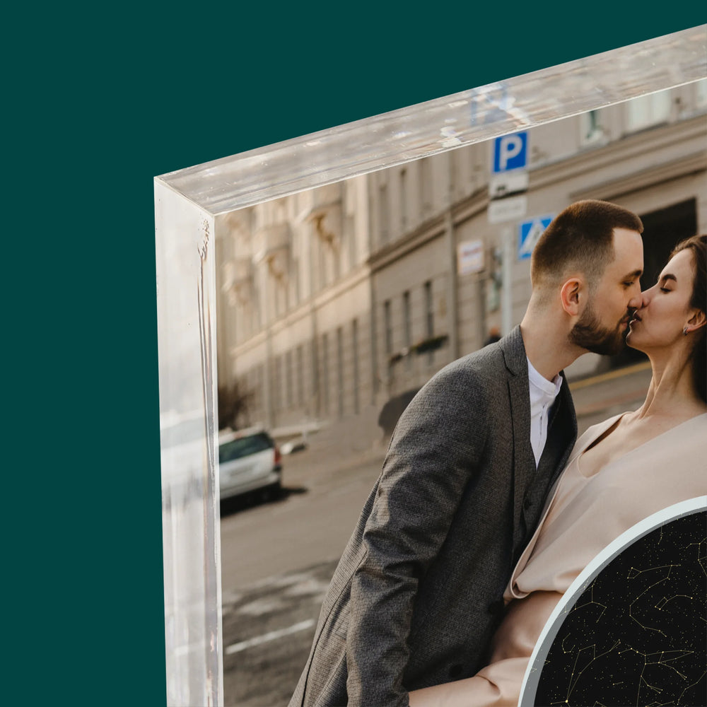 Print op een 2 cm dik kleurloos acrylblok (plexiglas) met een gepersonaliseerd patroon naar keuze.
