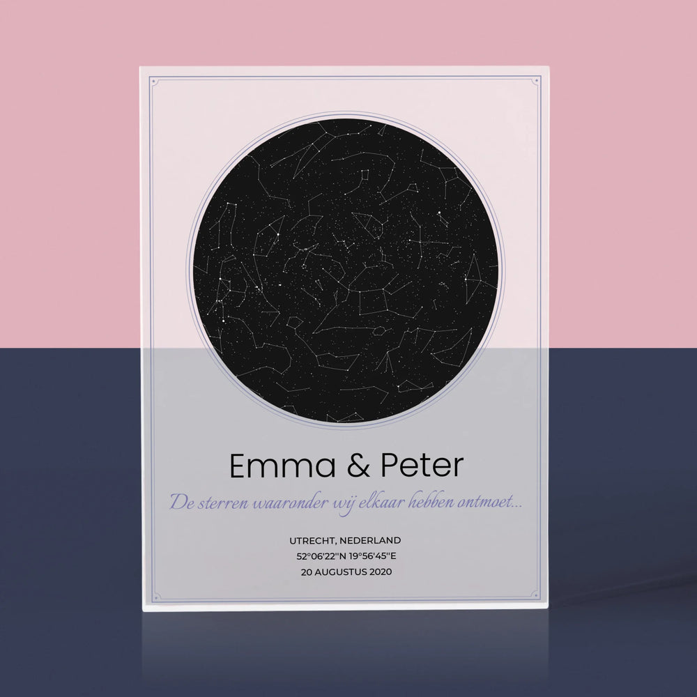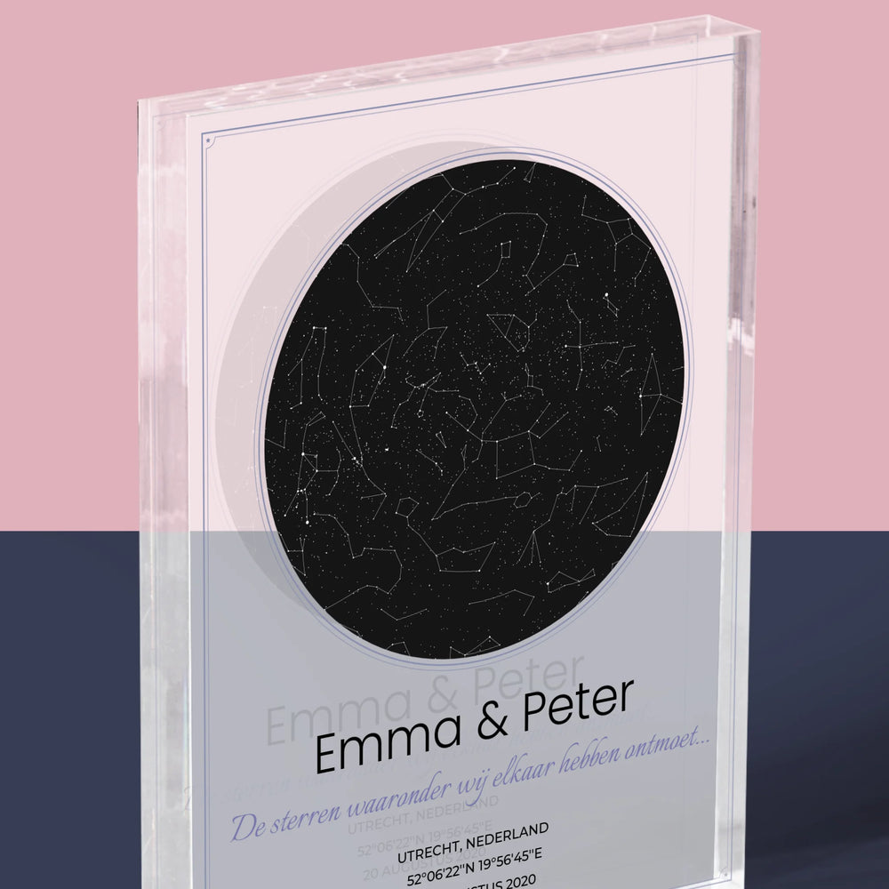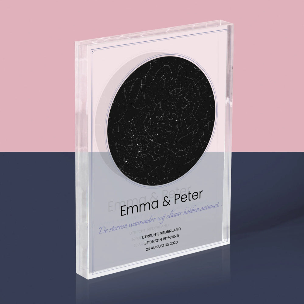 Starrenkaart: Sterrenkaart Onder De Sterren - Acryl blok - Verticaal