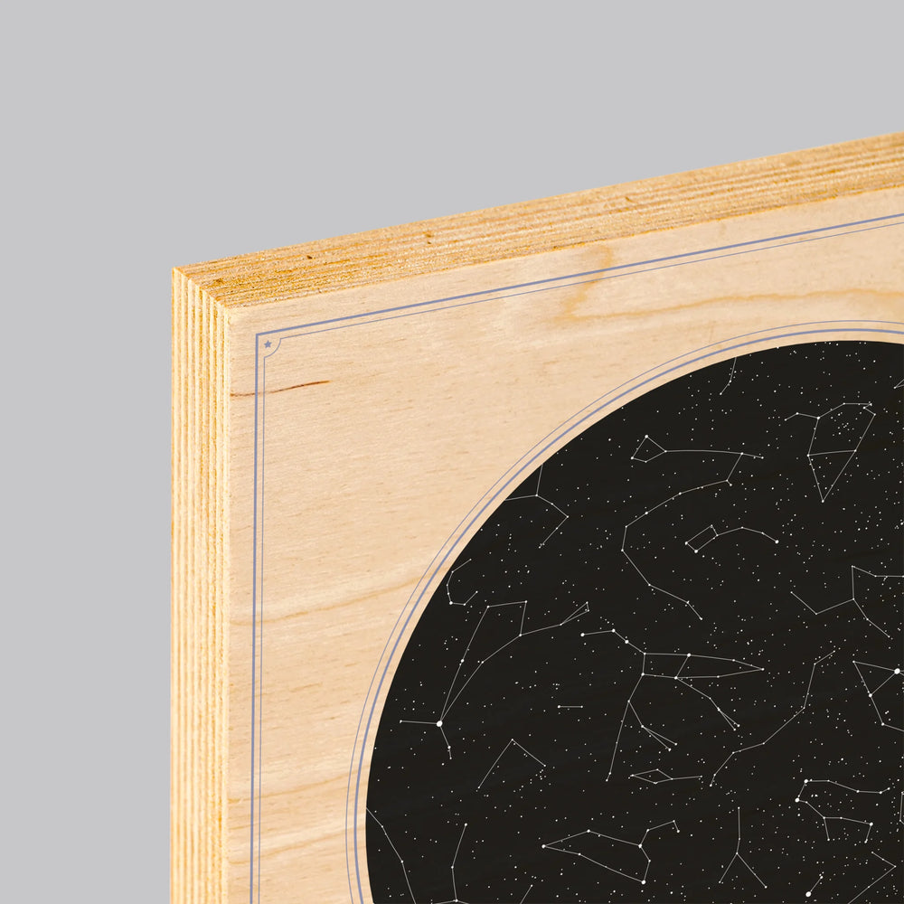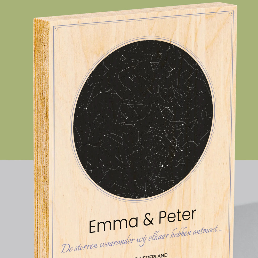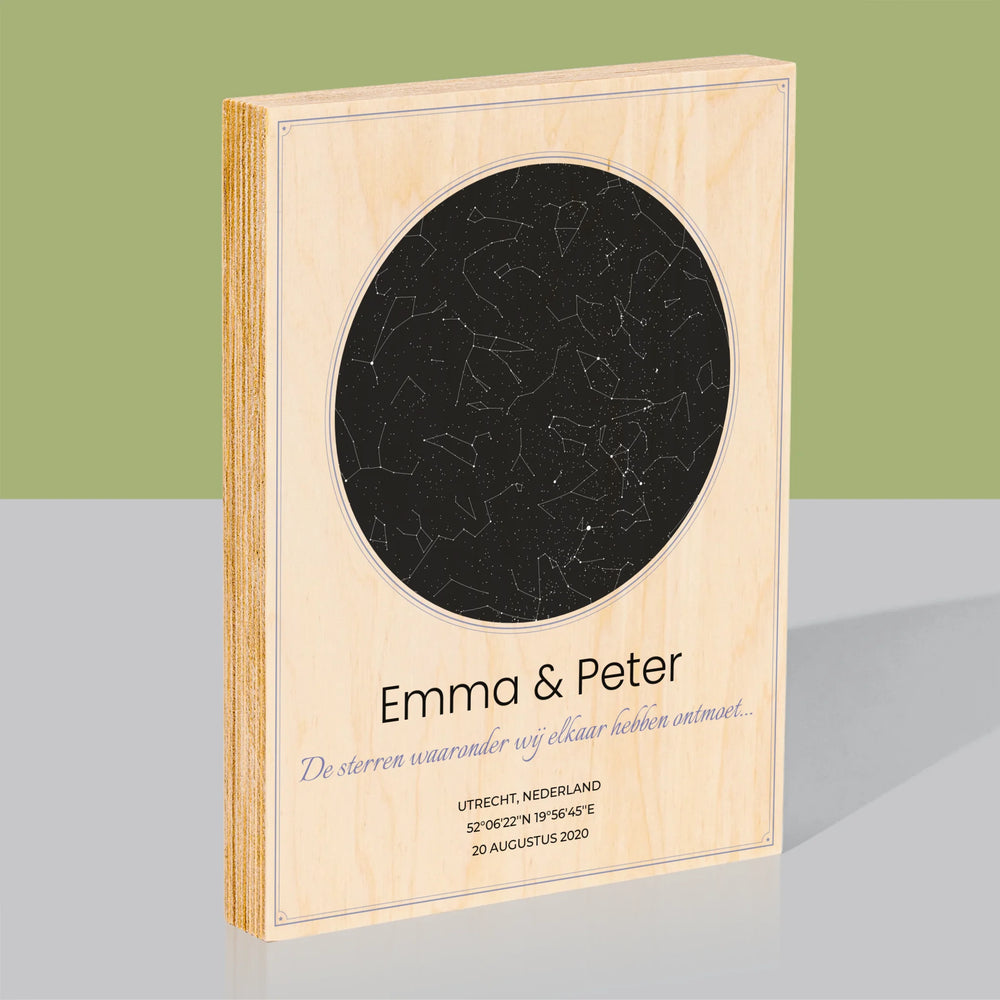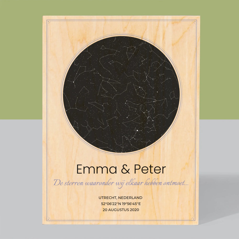 Starrenkaart: Sterrenkaart Onder De Sterren - Afdruk op hout