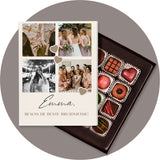 Heerlijke Belgische chocoladepralines in een elegante doos met de personalisatie naar keuze.