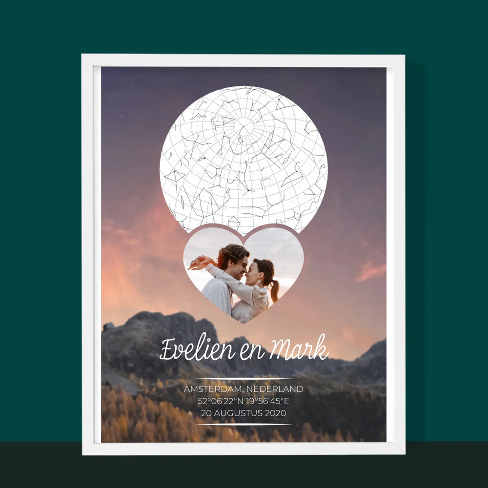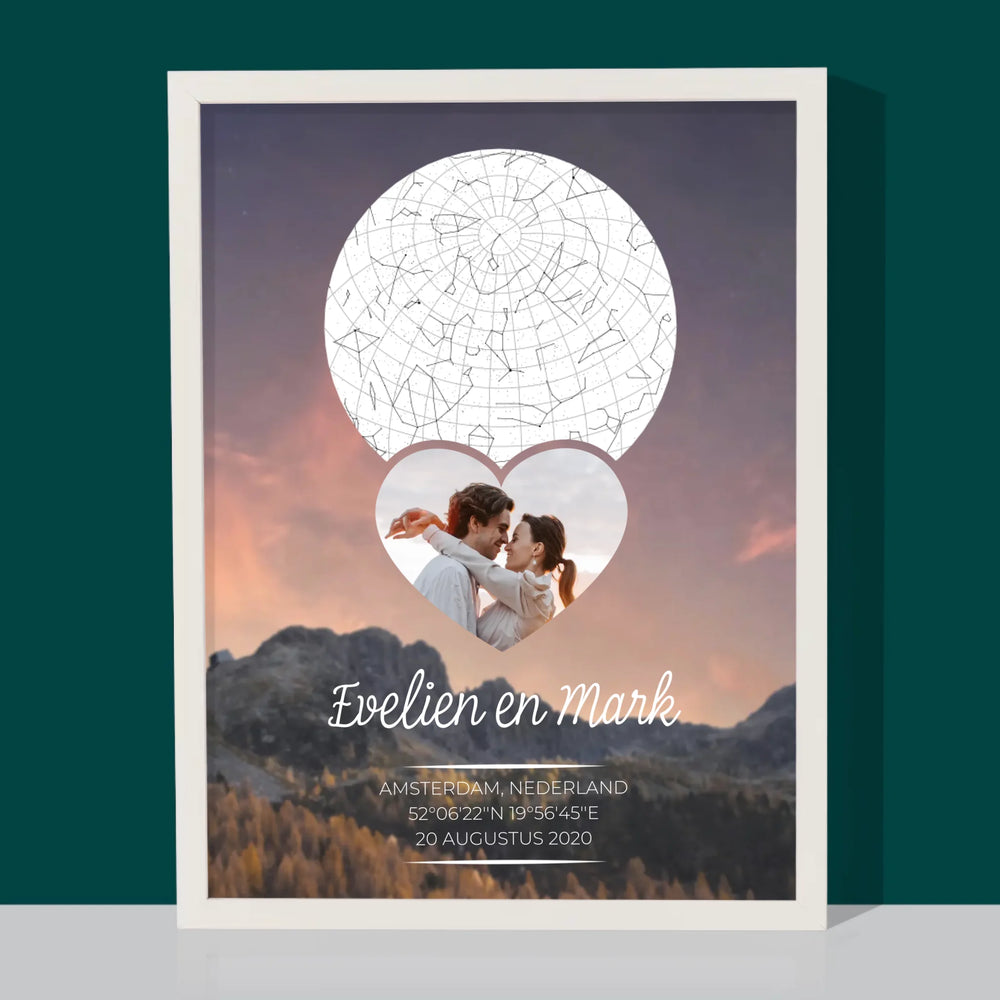Starrenkaart: Verliefden Op De Bergen - Afdruk met frame