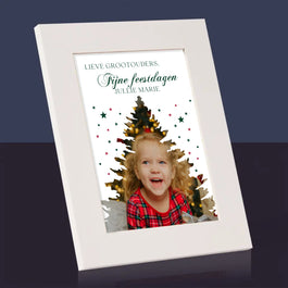 Dankzij de elegante houten standaard kan de print overal worden geplaatst en staat hij stabiel.