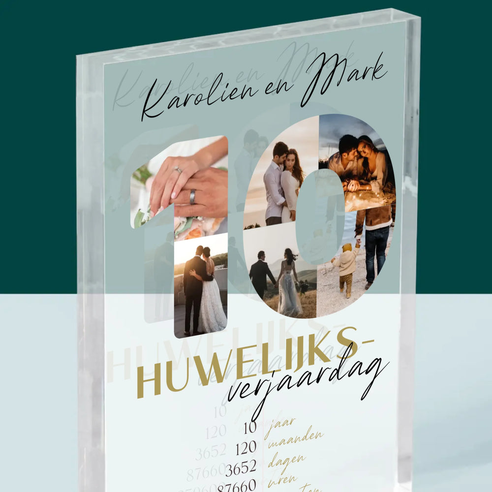 Woord Van Foto'S: 10De Huwelijksverjaardag - Acryl blok - Verticaal