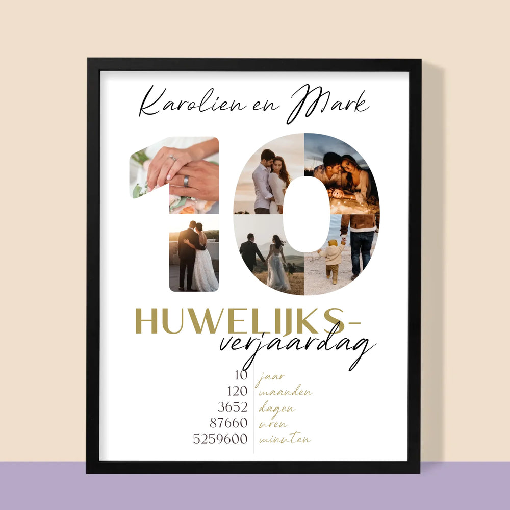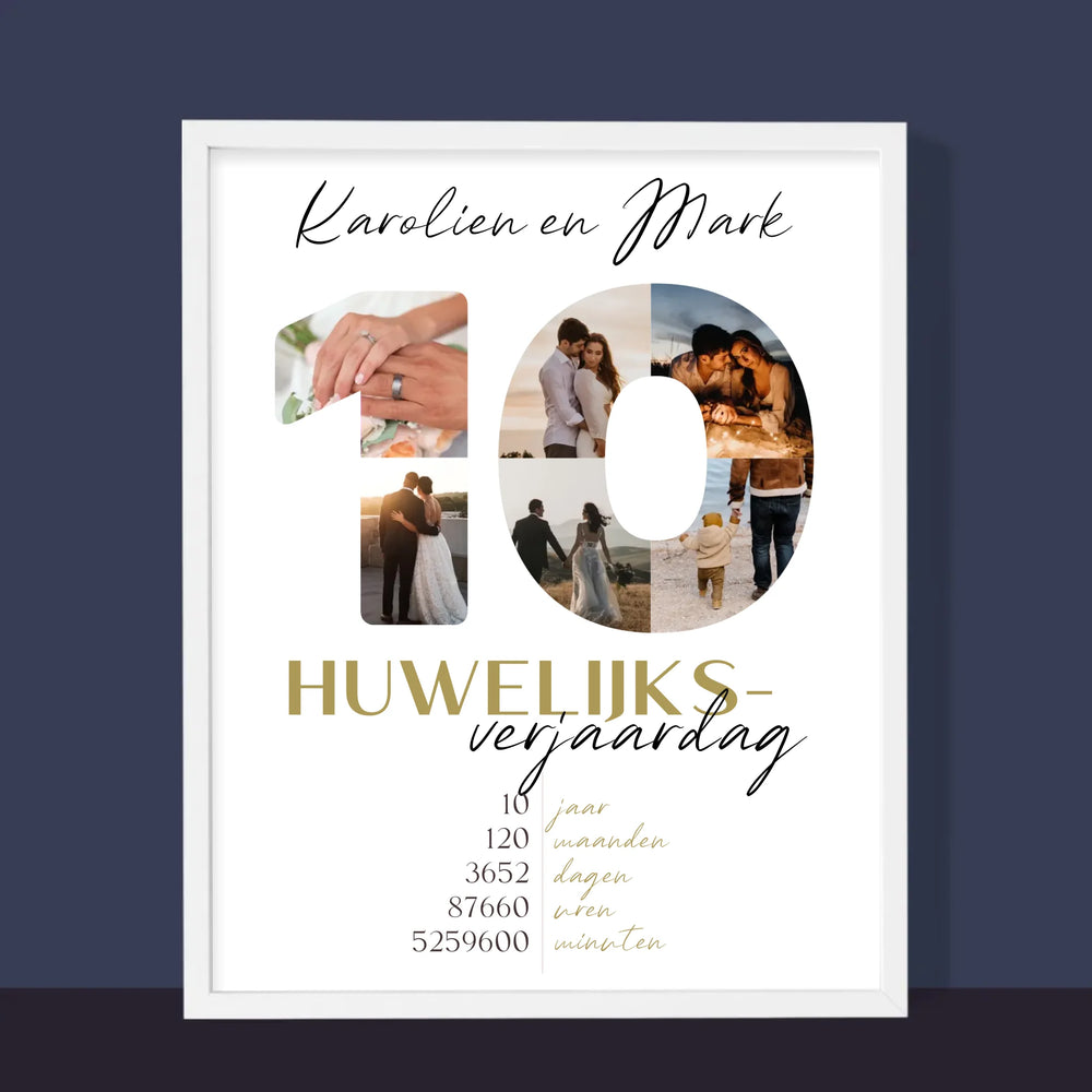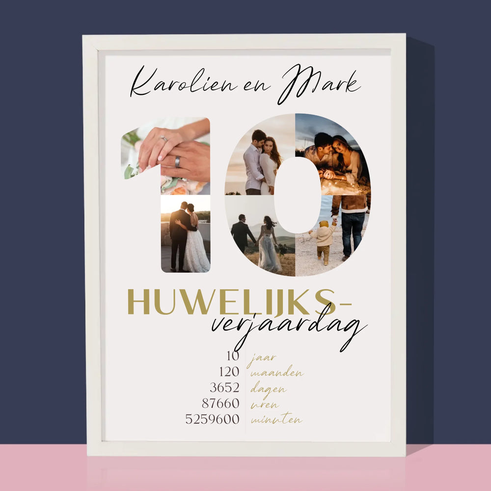 Woord Van Foto'S: 10De Huwelijksverjaardag - Afdruk met frame