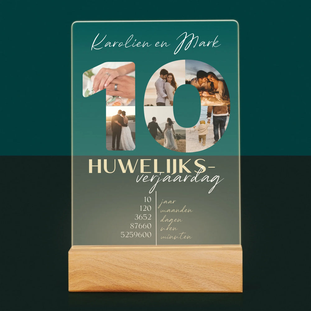 Woord Van Foto'S: 10De Huwelijksverjaardag - Afdruk op acrylglas met LED