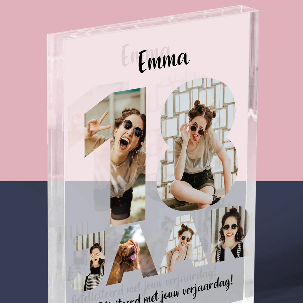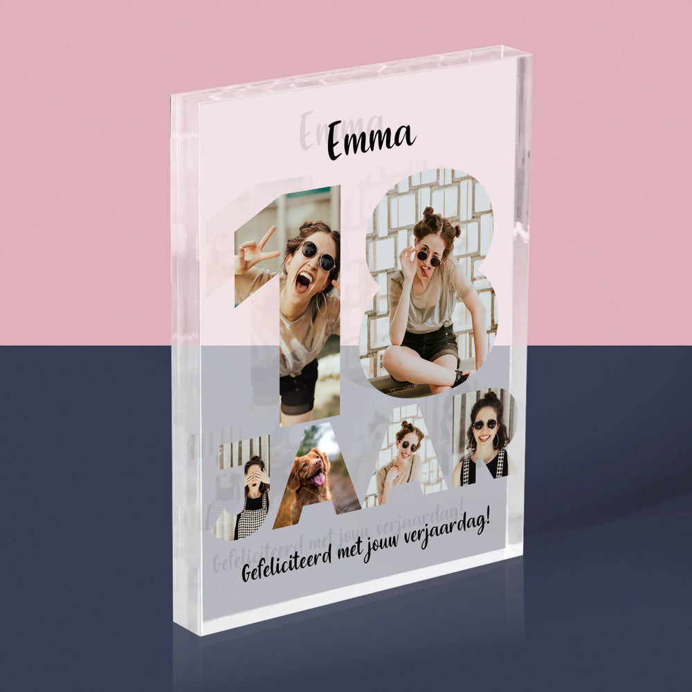 Woord Van Foto'S: 18 Jaar - Acryl blok - Verticaal