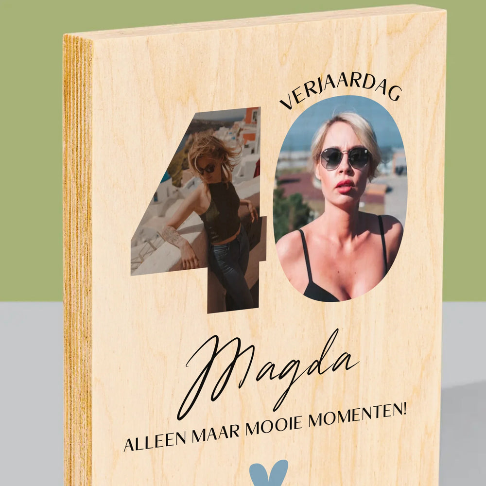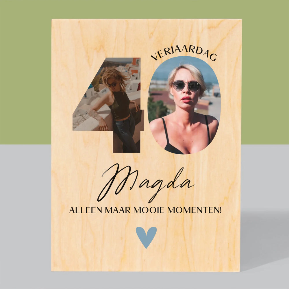 Woord Van Foto'S: 40E Verjaardag Mooie Momenten - Afdruk op hout