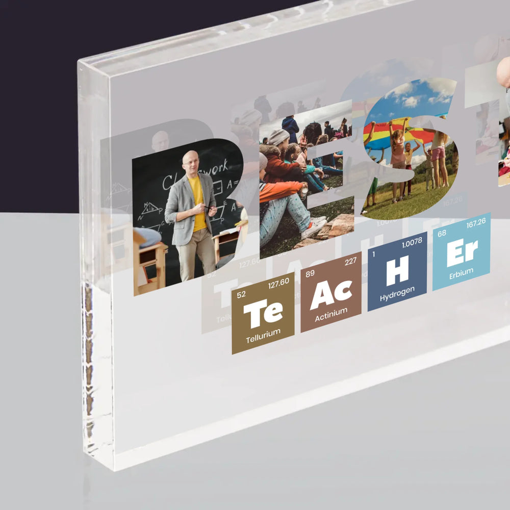 Woord Van Foto'S: Best Teacher Chemische Elementen - Acryl blok - Horizontaal