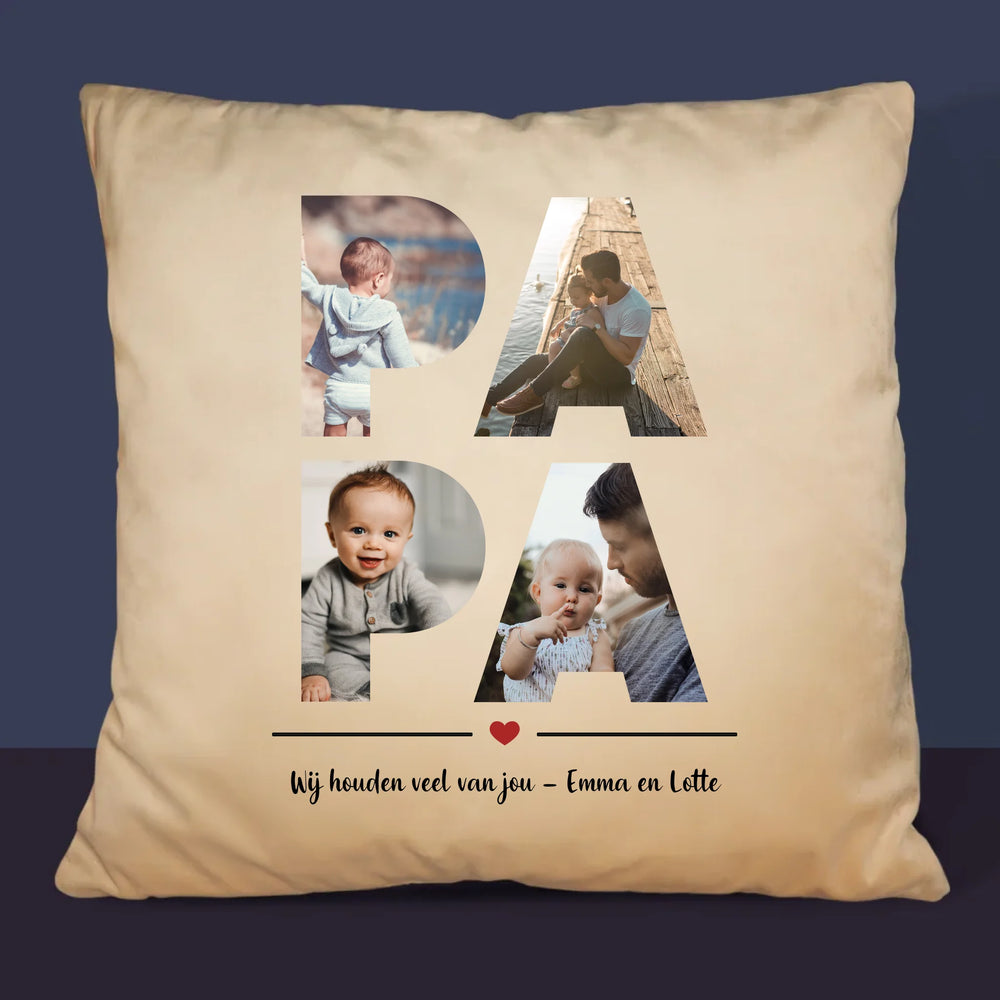 Katoenen sierkussen met door jou gekozen personalisatie.