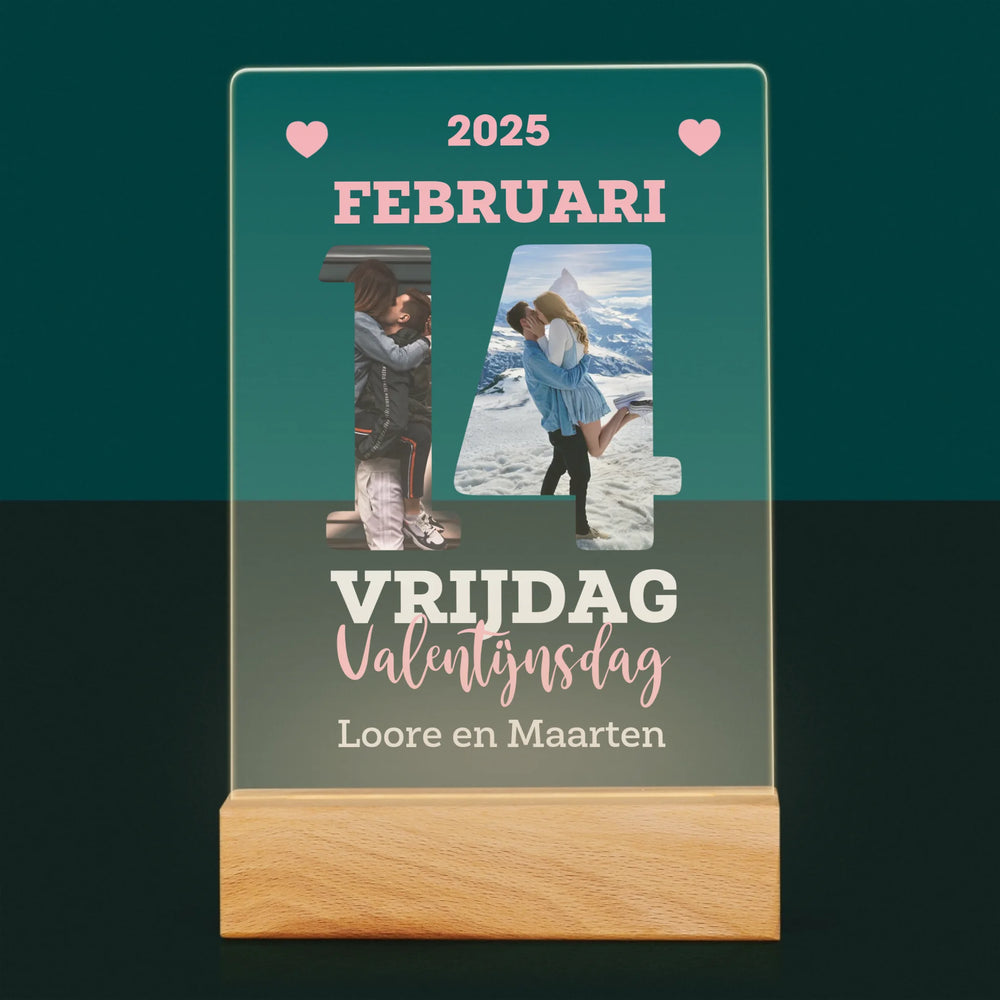 Woord Van Foto'S: Valentijnsdag Kalenderblad - Afdruk op acrylglas met LED