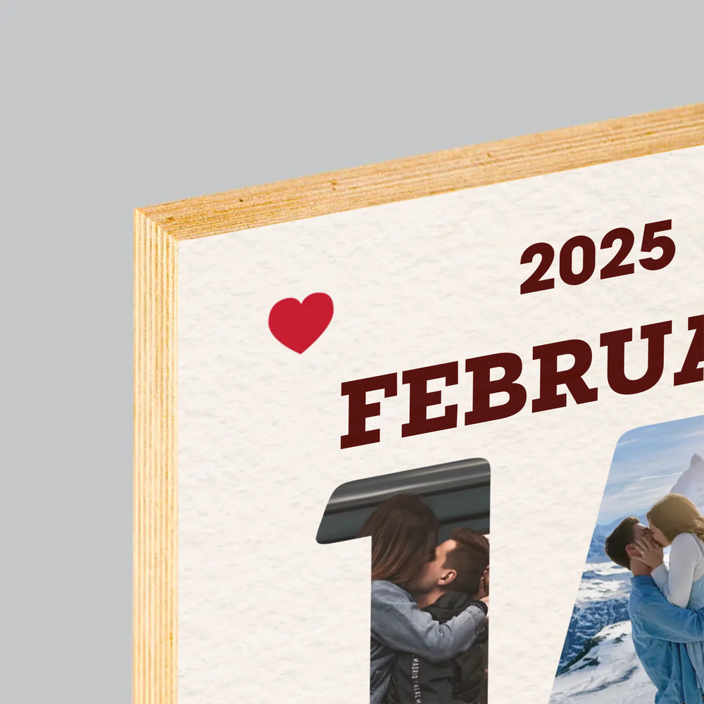 Woord Van Foto'S: Valentijnsdag Kalenderblad - Afdruk op hout