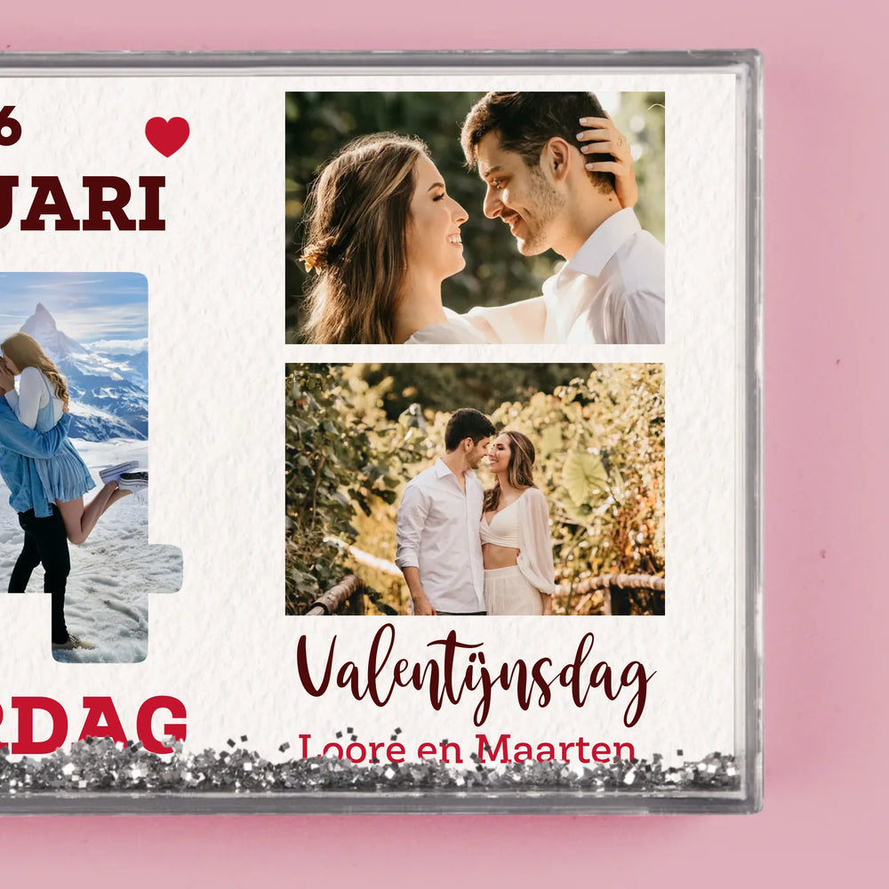 Gemaakt van transparant plastic, van binnen gevuld met water en confetti in de vorm van hartvormige bloemblaadjes!