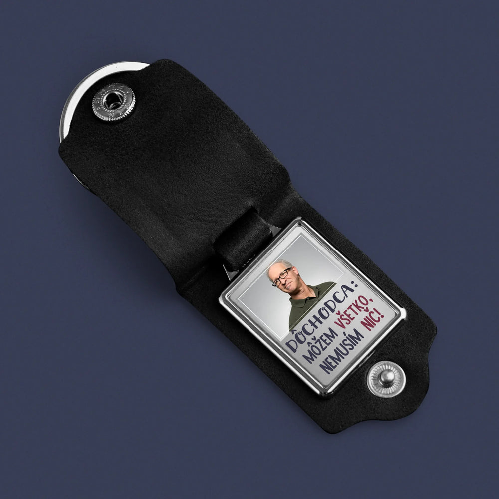 Zdjęcie i Podpis: Emeryt Mogę Wszystko - Kožená kľúčenka s fotografiou