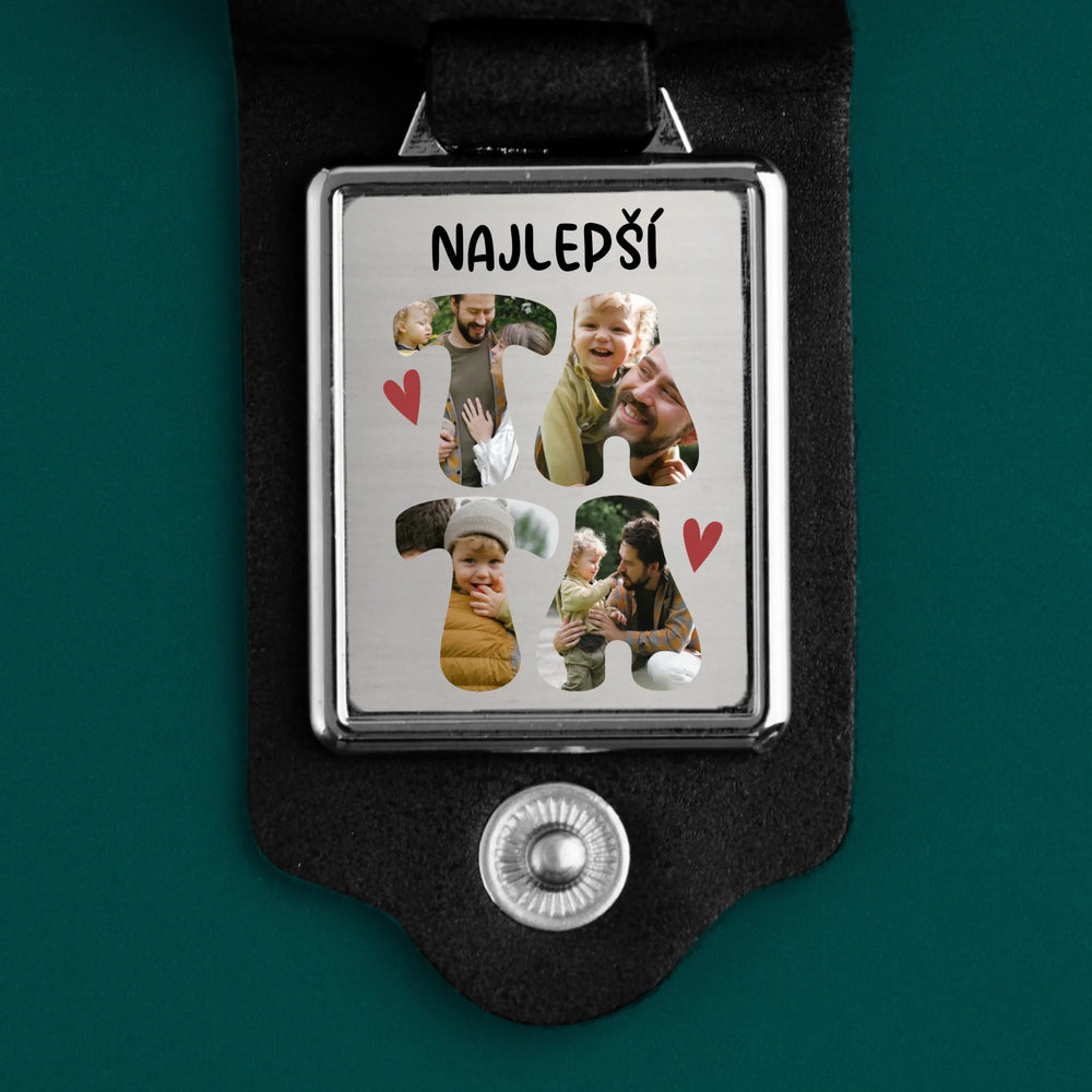 Zdjęcie i Podpis: Najlepszy Tata Serce - Kožená kľúčenka s fotografiou