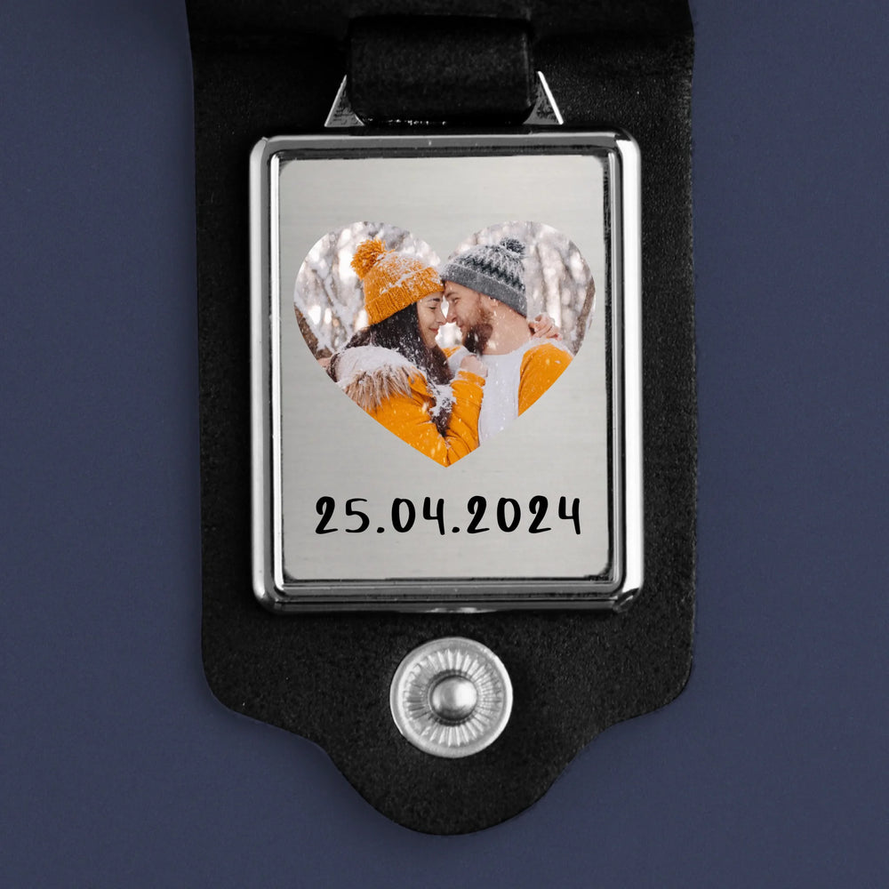 Zdjęcie i Podpis: Zdjęcie w Sercu - Skórzany Brelok Ze Zdjęciem | SK
